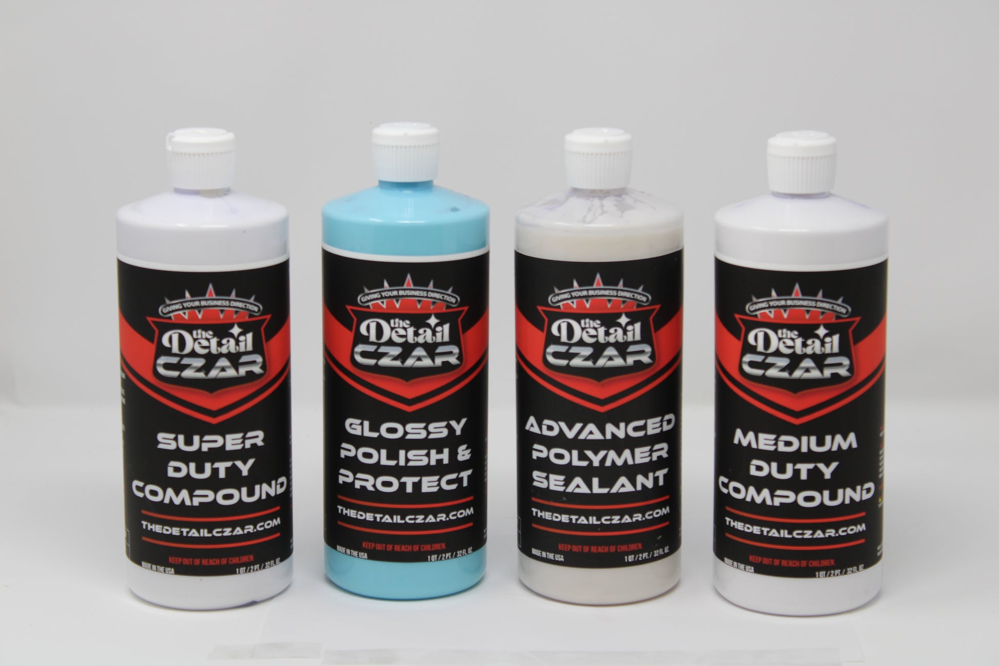 This Value Priced Detail Czar Kit includes: our Super Duty Polishing Compound, Medium Duty Polishing Compound, Glossy & Protect Polish and our Advanced Polymer Protectant. This is what you need to remove 800 and 1000 sanding scratches, provide a glossy polish while protecting the painted surfaces for up to 12 months.